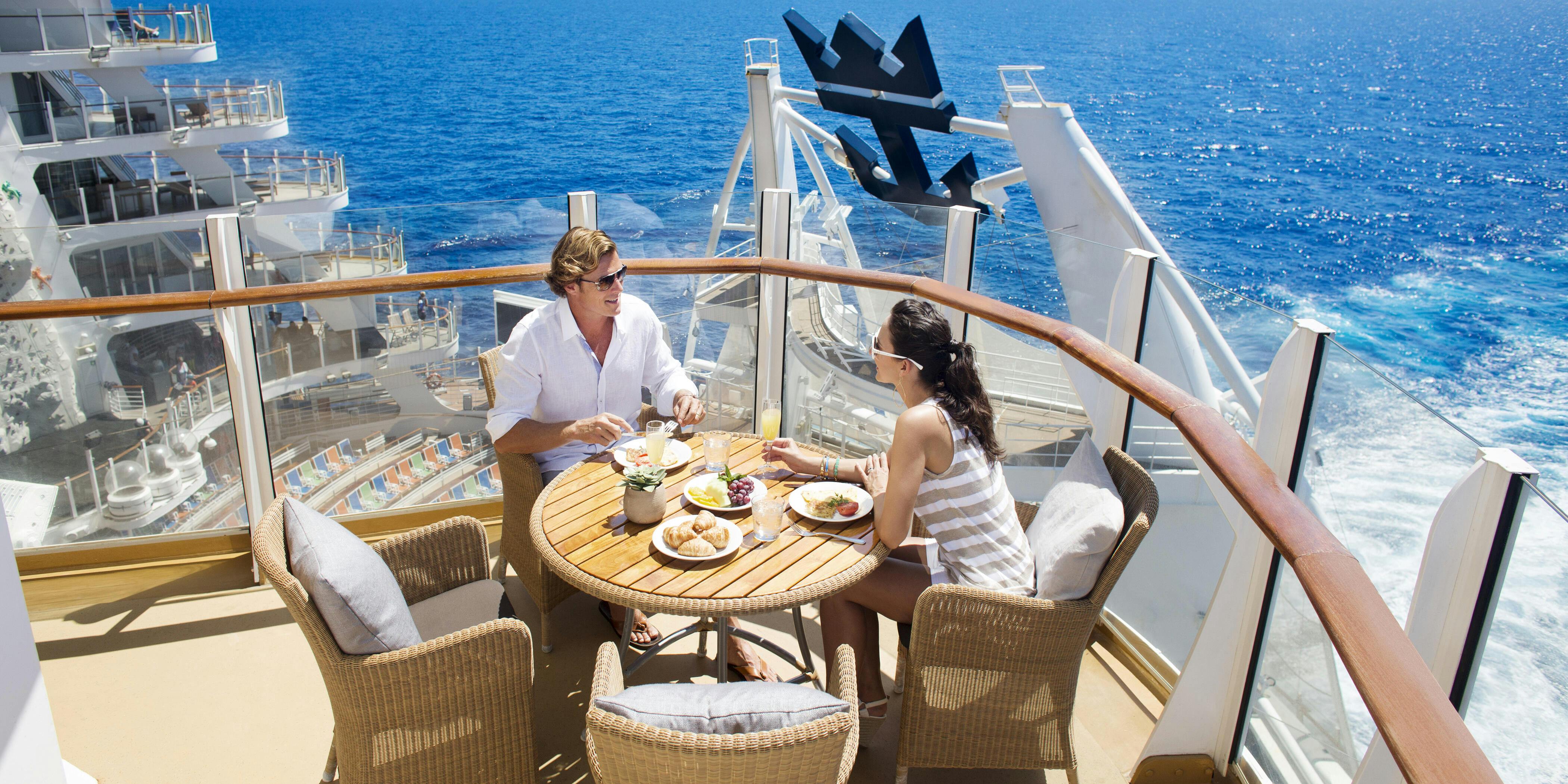Whether information technology's coffee and croissants on your balcony or pizza and a movie in your cabin after a long 24-hour interval on the beach, room service is the kind of nosotros're-not-at-domicile luxury we cruise for. It's convenient on mornings with early shore excursions and decadent on days when wearing your jammies until dinner is your idea of a restful vacay. Families cruising with children rely on it to save the stress of mealtime in crowded dining rooms. And who doesn't need an afternoon choice-me-upwards of cookies or nachos?